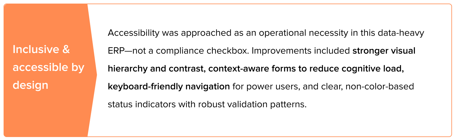Designing for the enterprise goes far beyond screens—it means untangling complex operations and respecting how people actually work. By grounding decisions in real workflows and constraints, this ERP evolved into an experience that felt intuitive, reliable, and empowering across roles—from dock supervisors to finance leaders.